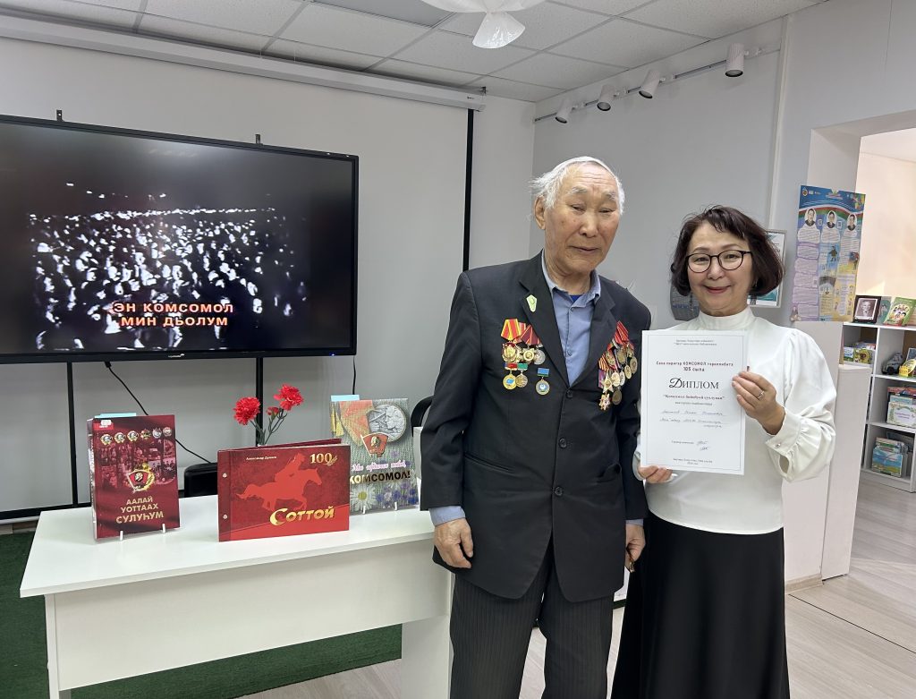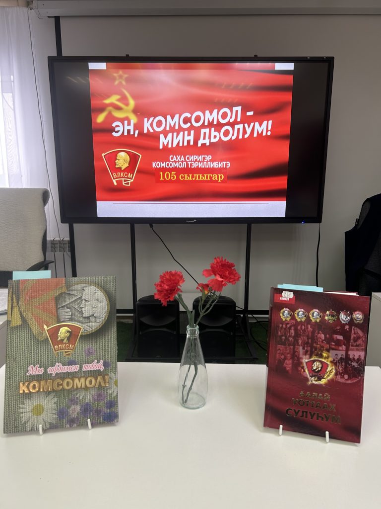 Бу үбүлүөйдээх кэм чэрчитинэн муус устар 3 күнүгэр «Эйгэ» библиотекаҕа «История Комсомола в песнях» диэн тематическай тэрээһин буолан ааста. Комсомол ветераннара Р.Р. Леонтьев, Т.Ф. Лаврентьева бочуоттаах ыалдьыттарынан буоллулар. Кинилэр эдэр саастарыгар комсомольскай үлэни салайбыт кэмнэрин ахтан-санаан аастылар, ол кэннэ тэрээһин кыттыылаахтара төлөннөөх Комсомол ырыаларын ыллаан, лозуннарын таайан, «Эн, Комсомол — мин дьолум!» ретро-зонаҕа хаартыскаҕа түһэн үйэтиттилэр. «Олоҕум доҕоро-Комсомол» викторина кыайыылааҕынан Леонтьев Р.Р. буолла.