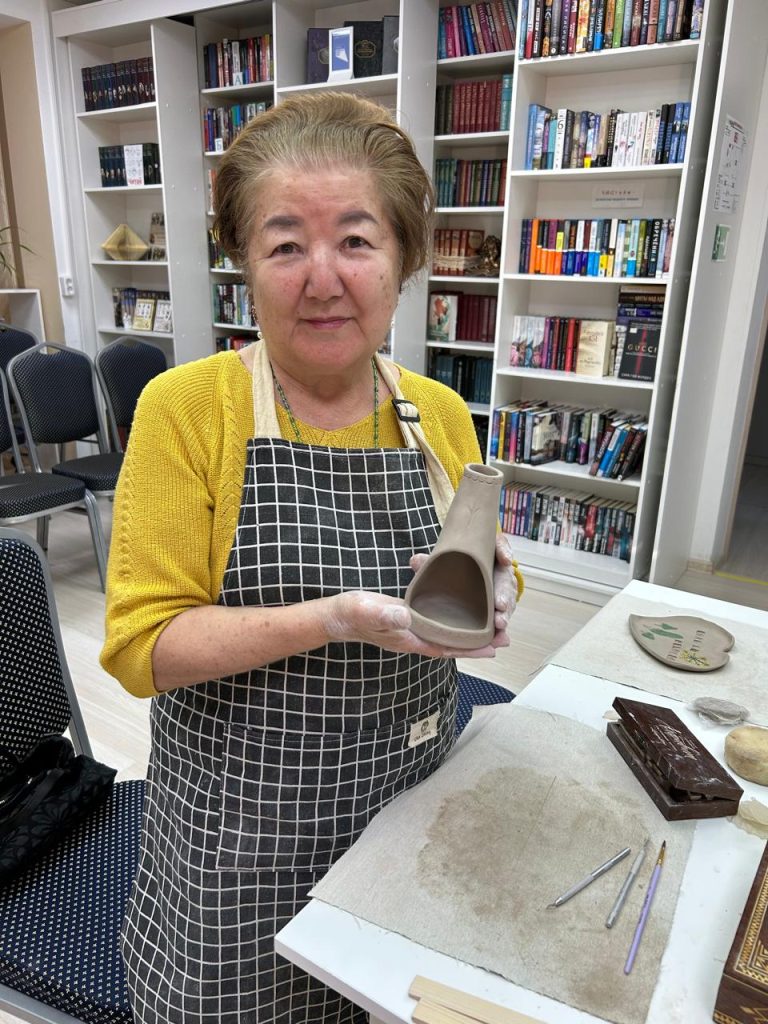В рамках Декады пожилых 3 октября хозяйка творческой мастерской «Ai_LEK» Лия Ефремовна провела мастер-класс по лепке из глины. В этот день участники смогли погрузиться в мир творчества и научиться новой технике по лепке глиняных изделий — көмүлүөк и декоративные тарелки. Мастер Лия Ефремовна поделилась своими знаниями и опытом, демонстрируя пошаговые процессы создания изделий. Атмосфера была наполнена позитивом и креативом, каждый участник смог раскрыть свой потенциал и создать собственный шедевр. Мастер-класс стал настоящим праздником творчества и подарил всем гостям не только новые навыки, но и массу положительных эмоций.