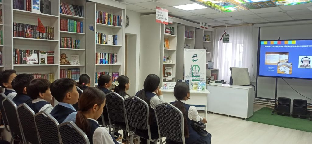 Сегодня 24 октября в библиотеке нового поколения «Эйгэ» учащиеся 6 класса вместе под руководством школьного библиотекаря Ларианной Гаврильевной приняли участие в Республиканской акции #МирЕдин, в рамках сетевого проекта «Читаем все» к Международному месячнику «Белая трость». Акция инициирована «Якутской республиканской специальной библиотекой для незрячих и слабовидящих им. И.Н. Егорова — Горного» при поддержке Министерства культуры и духовного развития РС(Я). Суть акции – напоминания обществу о внимании к проблемам людей с инвалидностью по зрению, понимании их нужд, солидарности с ними.